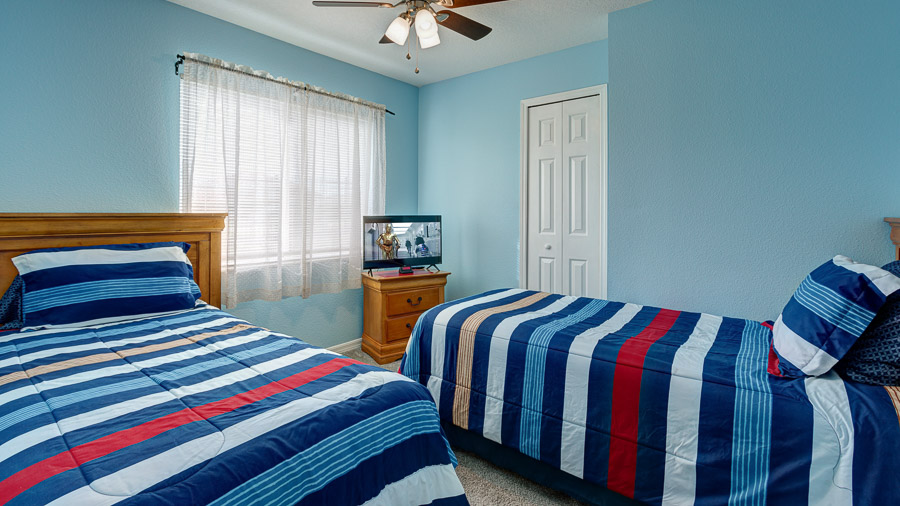 This very comfortable Executive Villa has ample space for a party of eight guests. With 4 Bedrooms and 2 Bathrooms; it’s ideal for a larger family wanting a holiday vacation together or for two families together. Returning guests say that from initial enquiry to post holiday vacation stay that the whole process is very easy and they receive great support and advice from John the Villa owner who cares about his guests. HILLCREST is on a beautiful corner setting with Private Pool which is not overlooked. Approved and fully licensed with Florida State Department – My License Number is DWE6316124. A modern quality villa that is colour co-ordinated to give the villa a warm modern style. The home features TV’s in the lounge and all bedrooms. A lounge area with two 3 seater Sofas, four breakfast high chairs providing ample seating, occasional tables and entertainment centre with 47" LCD TV. All TVs have live channels and movie streaming. Guests who have their own Hulu and Netflix accounts have the opportunity to sign in to their favourites. The pool area can be accessed from the lounge, whilst overlooking this area you have a fully equipped Kitchen including microwave, dishwasher, refrigerator, range, cookware, coffee machines….. everything you will need for a gourmet meal. A Breakfast Bar gives additional seating for a quick ‘bite to eat’ or morning coffee before those adventurous days visiting all Orlando has to offer!! A Formal Dining Area for that quiet evening in is located just to the front of the kitchen. Bedrooms & BathroomsThe Master Bedroom with en-suite has a Queen-size bed, TV, wardrobe area, chest of draws and side tables adjacent to the bed with lamp. This Bedroom overlooks the Pool Area. The en-suite bathroom offers is equipped with hair dryer, sink, WC and large double size shower. The en-suite bathroom offers direct access from the swimming pool for added convenience from swimming Pool straight into the shower. There is also an additional Queen bedroom with TV, wardrobe, chest of draws, side tables adjacent to bed with lamps. A themed Disney Twin Bedroom, TV, wardrobe, chest of draws, side table adjacent to bed with lamp. A colour co-ordinated Twin Bedroom, TV, wardrobe. A Family Bathroom incorporating bath, shower over the bath, sink, WC, hair dryer, cupboards.