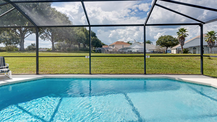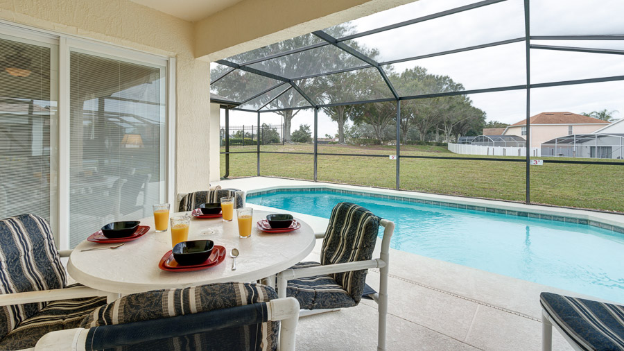 Pool Area & OutdoorsA lovely Private Pool which is fully screened for added comfort and overlooks a large lawned area offering a quiet setting in a nice corner plot. Patio furniture including dining table, chairs and sun loungers plus a Large Deck Area providing you a place to entertain in the warm evenings!! The pool area also benefits from a shaded Lanai Area which is ideal to be outside in the shade and also an area to enjoy when the occasional rain arrives. The pool can be heated if necessary; typically needed from end of September to end of May – An optional extra just ask John the Villa owner for the cost per day.
