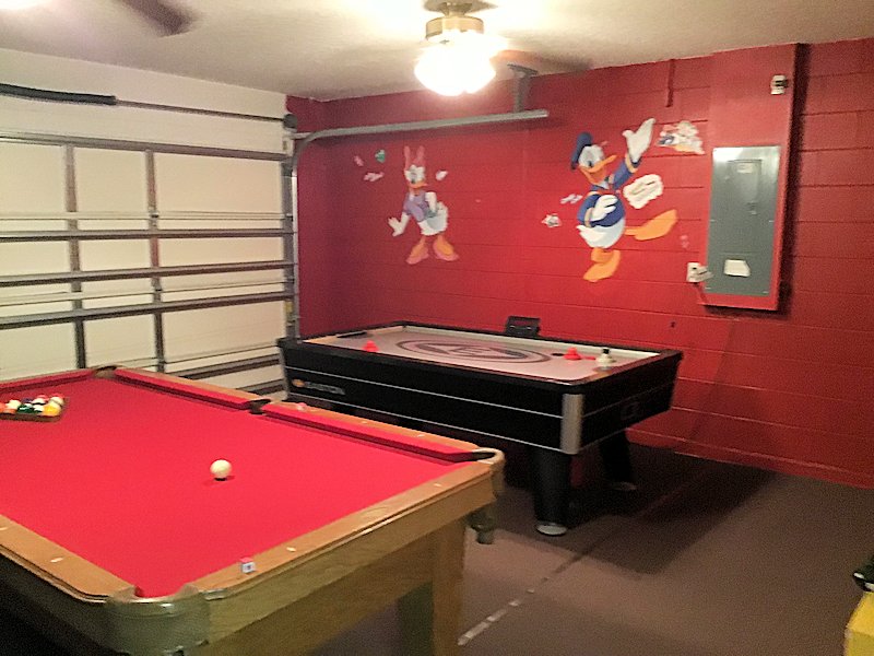 Second master en-suite bathroom, beach seaside themed with plenty of towels for our guests to use. Shared SpongeBob themed bathroom with a closet in the walkway between twin bedrooms, with towels for bathrooms, pool towels, a change of sheets, and extra pillows. The games room is situated in the garage, accessible from the utility room. Ceiling fans and lights, slat pool table, air hockey table, bar table and two chairs, games and cards, and a stroller free of charge. The calendar shows which dates are available in the villa (and can be booked). Held dates are bookings which are yet to be confirmed, so these may become available. Where this villa looks ideal for your Florida vacation and your dates are available, ensure you contact the owner to confirm the price.